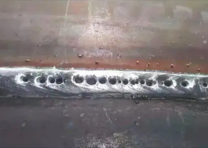 This defect is commonly caused by contamination such as oil, rust, paint, moisture, or mill scale. Inadequate shielding gas, damp consumables, and unstable welding parameters can also allow gas to remain trapped in the molten weld pool instead of escaping during solidification.